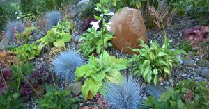 Kostrzewa w kompozycji z hosta i żurawką