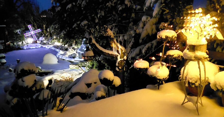 Oświetlenie ogrodu zwłaszcza zimą może stworzyć urokliwą atmosferę, podkreślając piękno zimowego krajobrazu zwłaszcza gdy dni są krótkie, a wieczory długie. Stworzy magiczną atmosferę i podkreśli zimową scenerię.